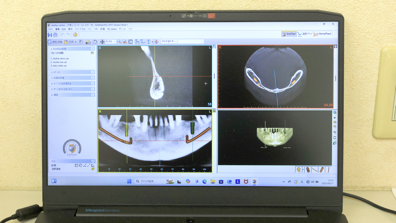 そこで当院は正確かつ安全なインプラント手術を実現するため、歯科用CT検査を実施。取得したデータを元に、事前に手術のシミュレーションを行っています。