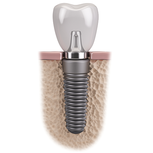 失われた歯のあごの骨にチタン製の人工歯根(歯の根)を埋め込み、その上に人工の歯(被せ物)をつける治療法です。