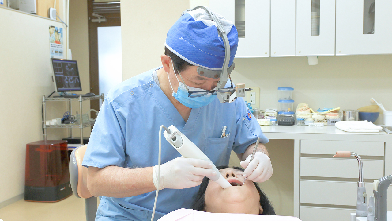 つめものや被せ物には、高い精度が求められます。そこで当院では口腔内スキャナーを活用し、デジタル技術を駆使した補綴(ほてつ)治療(※)に注力。つめもの・被せ物の精度を大幅に高めています。